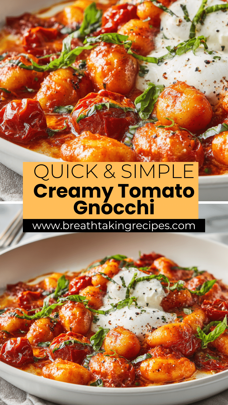 30 Minute Creamy Tomato Gnocchi with Burrata (Easy Vegetarian Dinner) - Breathtaking Recipes