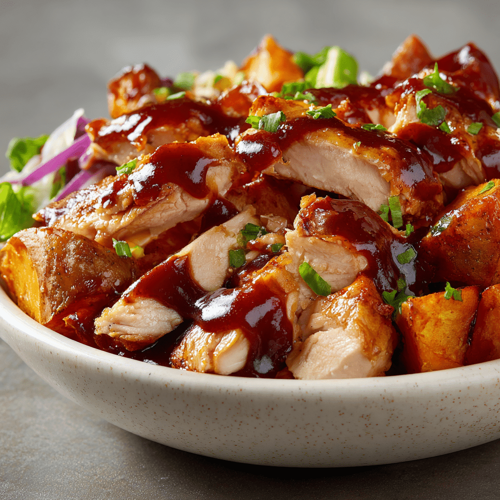 If you’re looking for a meal that checks all the boxes flavorful, filling, and nutritious these BBQ Chicken & Roasted Sweet Potato Bowls are a perfect choice. Tender chicken coated in smoky BBQ sauce pairs beautifully with naturally sweet roasted sweet potatoes and fresh toppings like avocado and corn. Everything comes together in a customizable bowl that works just as well for busy weeknights as it does for meal prep.