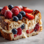 Berries & Cream Stuffed French Toast Casserole transforms classic stuffed French toast into a shareable, baked brunch centerpiece. With layers of sweet cream cheese and fresh berries nestled between custard-soaked bread, this berry French toast casserole with cream cheese is both impressive and simple. Perfect for holidays, gatherings, or cozy weekends, it’s a recipe that delivers flavor and convenience every time.