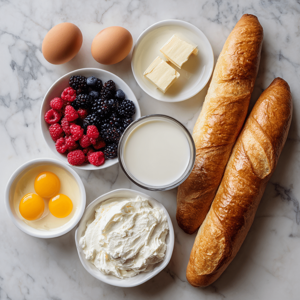 Use slightly stale bread for best absorption. For overnight French toast with cream cheese, assemble the night before and refrigerate. Add extra berries on top before baking for a vibrant presentation.