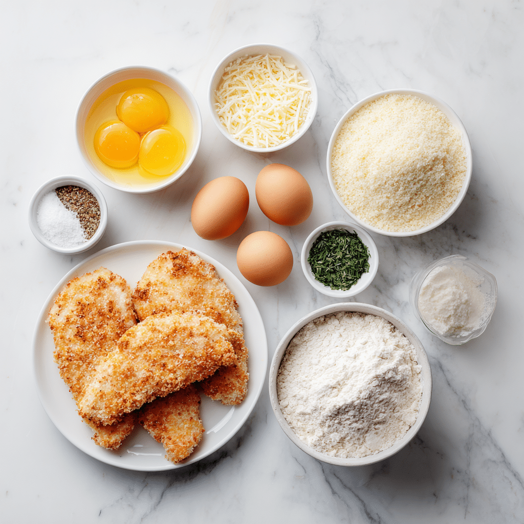 Prepare three shallow bowls: one with seasoned flour, one with whisked eggs, and one with a mixture of panko, Italian breadcrumbs, and parmesan cheese.