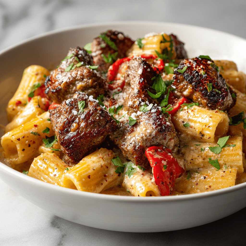 Cajun Steak Tips Rigatoni: 30-Min Creamy Parmesan Pasta