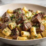 Cajun Steak Tips in Cheesy Rigatoni Parmesan Sauce is the perfect combination of bold Southern flavor and creamy Italian comfort. This dish brings together tender steak bites coated in Cajun spices with a rich, cheesy pasta that feels indulgent yet easy to prepare at home. If you’re searching for steak pasta dinner ideas that are both satisfying and simple, this recipe checks every box.