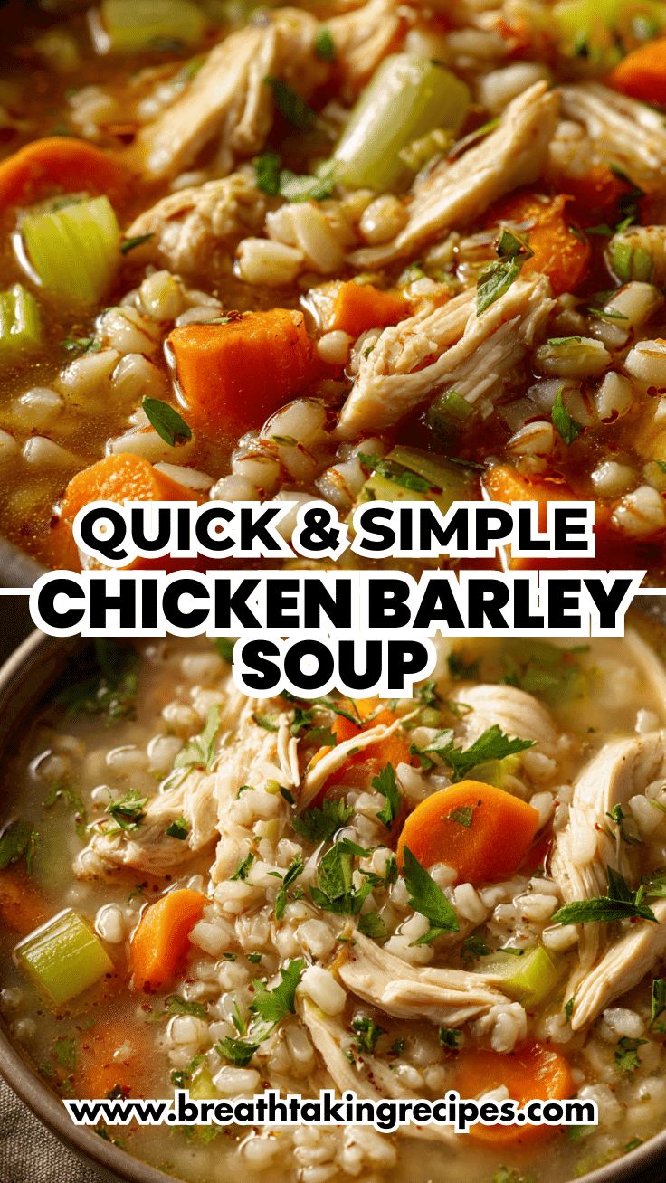 This chicken barley soup is a timeless comfort food that’s both hearty and nourishing. With tender chicken, chewy barley, and simple vegetables simmered in broth, it’s a soup that feels satisfying without being heavy. Everything cooks together in one pot, making it ideal for weeknight dinners, meal prep, or whenever you want a cozy homemade soup that uses minimal ingredients.