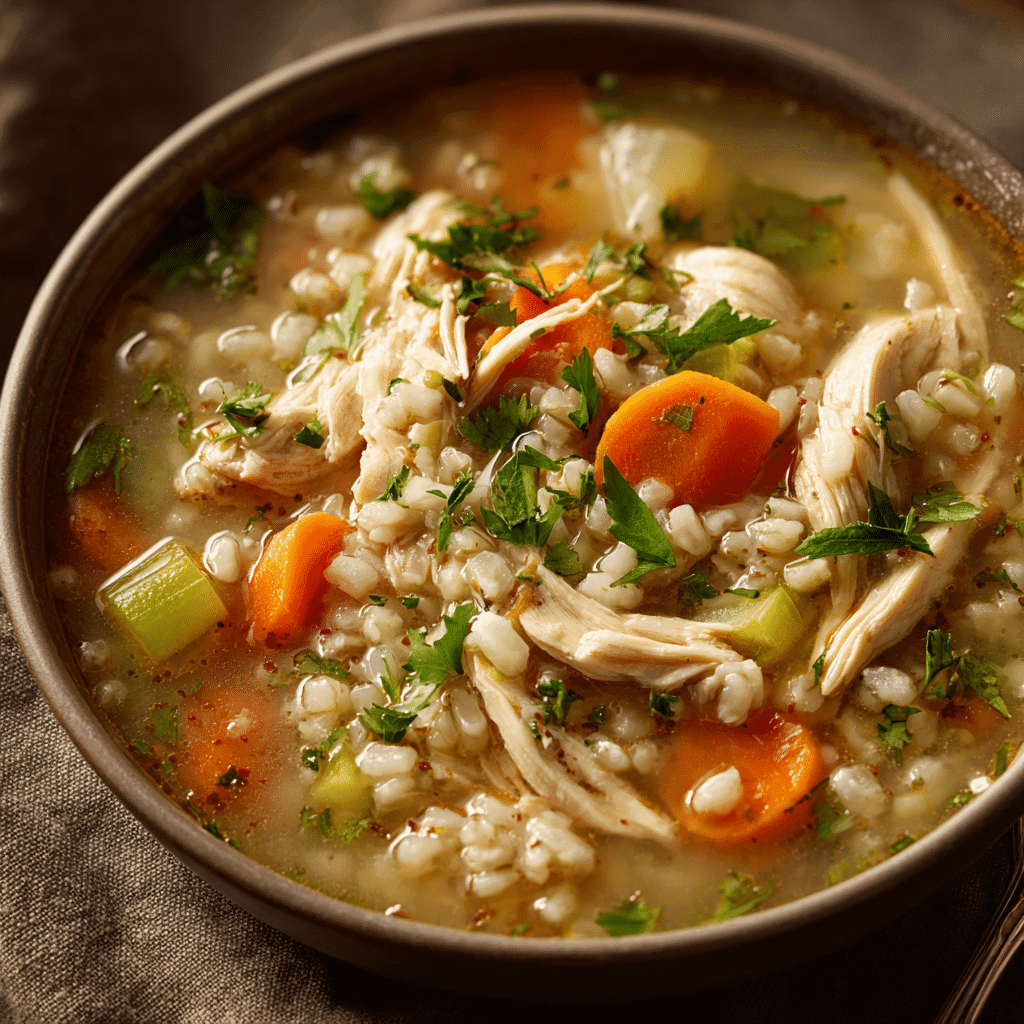 Hearty chicken barley soup made with tender chicken, vegetables, and barley. A simple and healthy comfort soup.