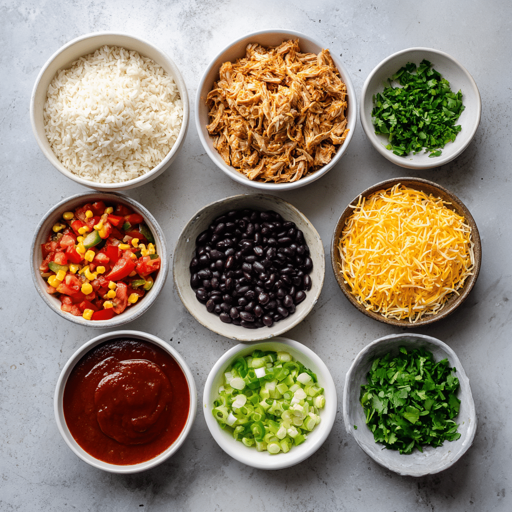 | Cooked shredded chicken | 2 cups | Rotisserie chicken works well |