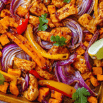 Chili and Brown Sugar Spice Rub Chicken and Sweet Potatoes is a bold, satisfying sheet pan meal that balances sweet, smoky, and spicy flavors perfectly. With tender roasted vegetables and juicy chicken, it’s an ideal choice for healthy weeknight dinners or fall meal prep. Simple ingredients, easy cleanup, and big flavor make this recipe a repeat favorite.