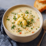 Cauliflower Soup is the kind of comforting, veggie-forward meal that feels indulgent while still being nourishing. This version is rich, thick, and loaded with tender vegetables like cauliflower, carrots, celery, and potatoes, all brought together in a creamy, cheesy base. Even picky eaters love this soup because it delivers big flavor and a smooth, satisfying texture. If you are searching for recipes that use cauliflower, delicious veggie meals, or the best cauliflower soup recipes for dinner, this one is a guaranteed favorite.