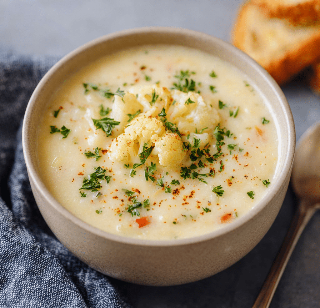 Rich and creamy cauliflower soup loaded with tender vegetables and a cheesy, comforting broth. A family-friendly veggie soup everyone will love.