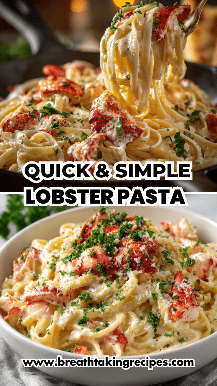 Creamy lobster pasta made with tender lobster meat, al dente pasta, and a rich garlic cream sauce finished with lemon and herbs. Elegant yet easy.