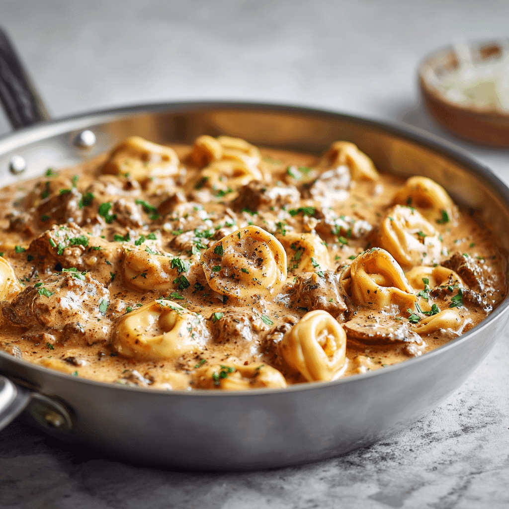 Creamy One-Skillet Beef Stroganoff Tortellini (30-Minute Dinner)