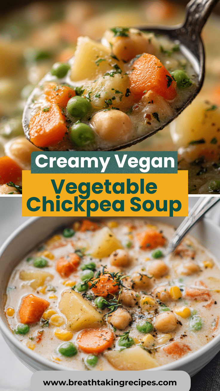 Creamy vegan vegetable chickpea soup made with tender vegetables, chickpeas, and a rich dairy-free broth. A hearty, comforting plant-based soup.
