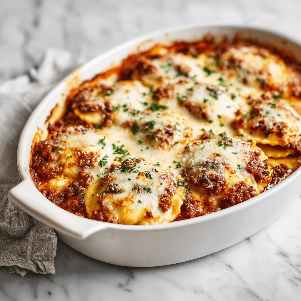 Easy Cheesy Baked Ravioli is a simple, hearty dinner that brings together everything you love about pasta night tender ravioli, rich meat sauce, and layers of gooey melted cheese. This baked ravioli casserole is quick to assemble, uses everyday ingredients, and feels like a cross between lasagna and baked ziti, making it perfect for busy weeknights or casual family gatherings.