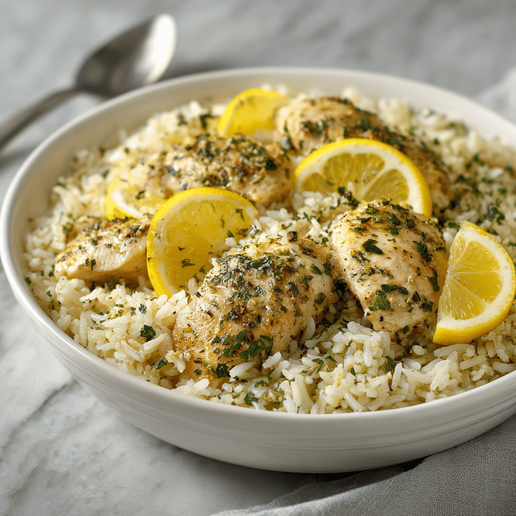 The slow cooking process allows the chicken to stay juicy while the rice absorbs the lemony broth and herb flavors, creating a balanced and hearty meal.