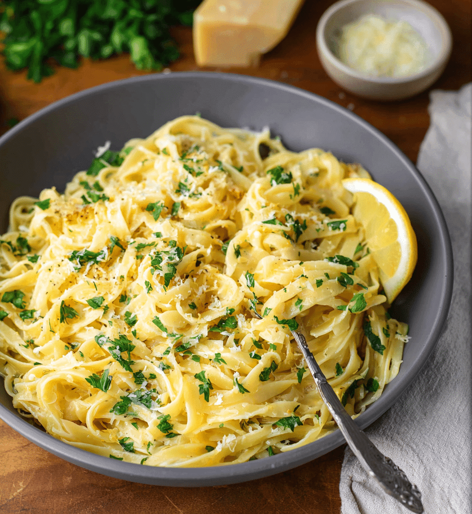 This lemon pasta recipe proves that simple ingredients can create incredible flavor. Made without butter or cream, it relies on olive oil, fresh garlic, lemon zest, and pasta water to create a light yet silky sauce that coats every strand of pasta.