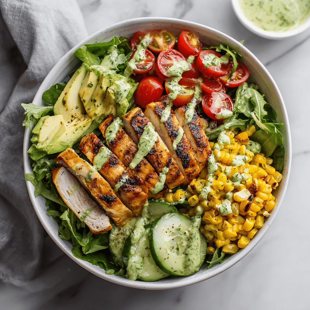 Grilled Chicken & Avocado Greens Bowl is the kind of meal that checks all the boxes for clean eating, balanced nutrition, and bold flavor. It combines lean grilled chicken, crisp vegetables, healthy fats from avocado, and a creamy homemade dressing that ties everything together.