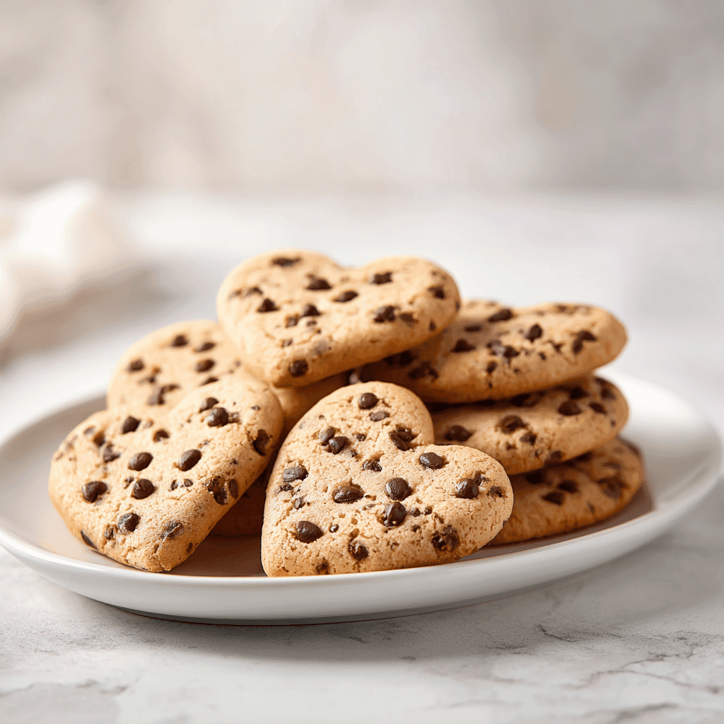 Soft and chewy heart-shaped chocolate chip cookies perfect for Valentine’s Day. Easy recipe with no chilling time.