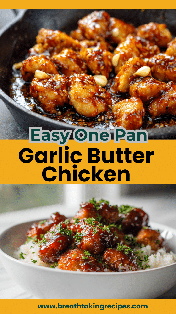 Garlic butter chicken rice made with juicy chicken pieces cooked in a rich garlic butter sauce and served over fluffy rice.