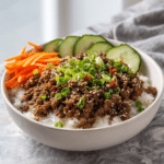 Korean Ground Beef Bowl is a fast, flavorful dinner that transforms simple ground beef into a savory Asian-inspired meal. With garlic, ginger, soy sauce, and sesame oil, this dish delivers bold flavor in under 30 minutes. Served over fluffy rice and topped with fresh vegetables, it’s one of the easiest dinners to make with ground beef. Whether you’re searching for ground beef ideas for dinner, cheap recipes for dinner, or meal ideas for the week, this Asian beef bowl checks every box for convenience and taste.