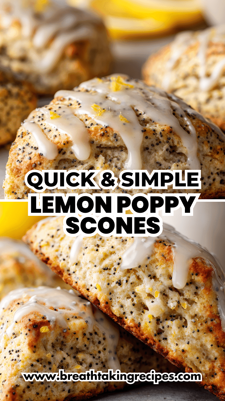 If you think scones are dry or difficult to make, these Lemon Poppy Seed Scones will completely change your mind. Made with heavy cream and melted butter, they bake up incredibly tender with a soft crumb and bright citrus flavor. A simple lemon glaze adds the perfect finishing touch, making these scones ideal for brunch spreads, tea parties, or a sweet morning treat.