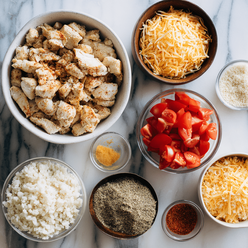 Ingredients for Low Carb Chicken Taco Casserole