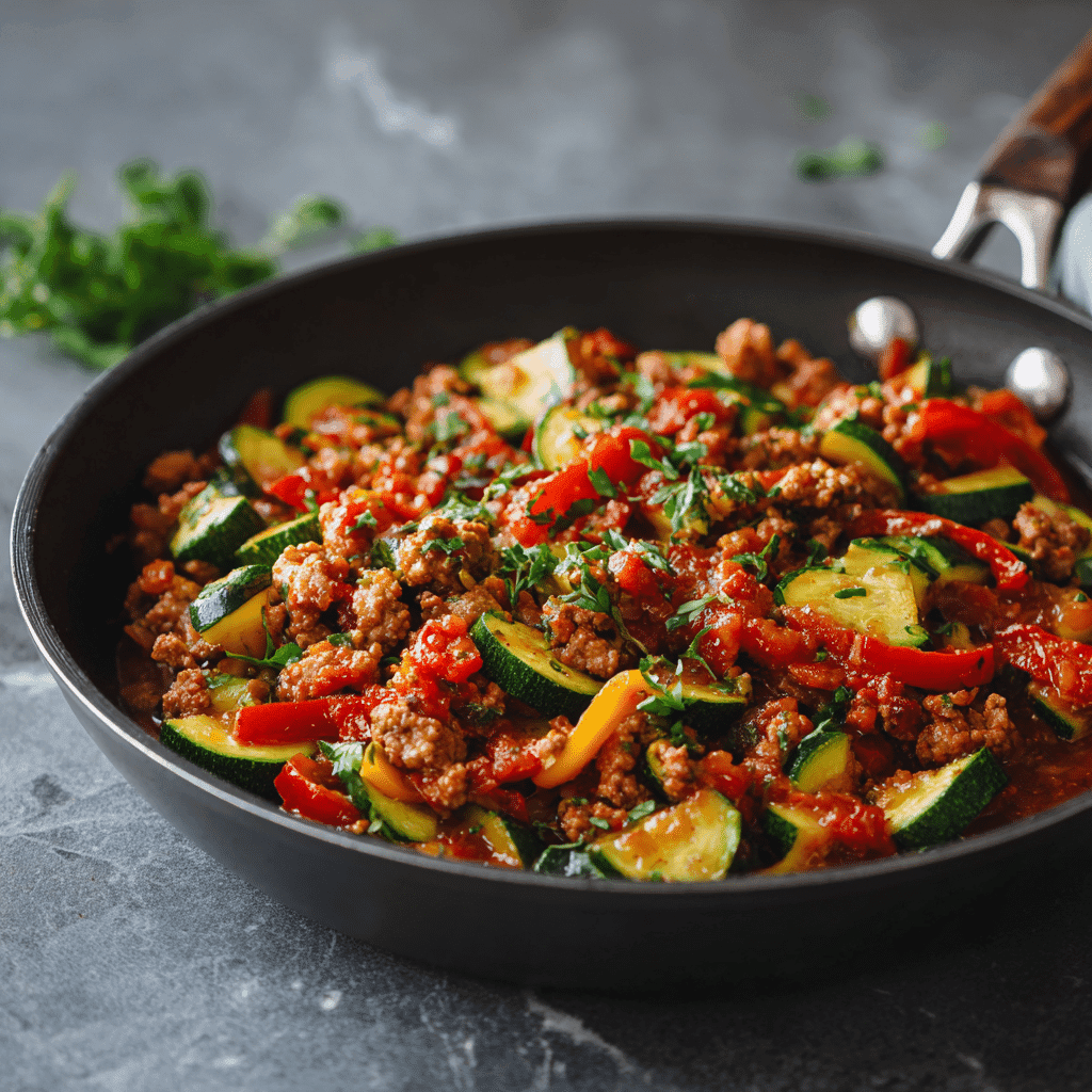 When you need a fast, nourishing dinner that still feels comforting, this Low Carb Italian Ground Turkey Skillet delivers. Lean ground turkey is seasoned with Italian spices, combined with sautéed vegetables, and finished with a rich tomato base for a meal that’s satisfying without being heavy. Everything cooks in one pan, making it ideal for busy weeknights, summer dinners, or high-protein meal prep.