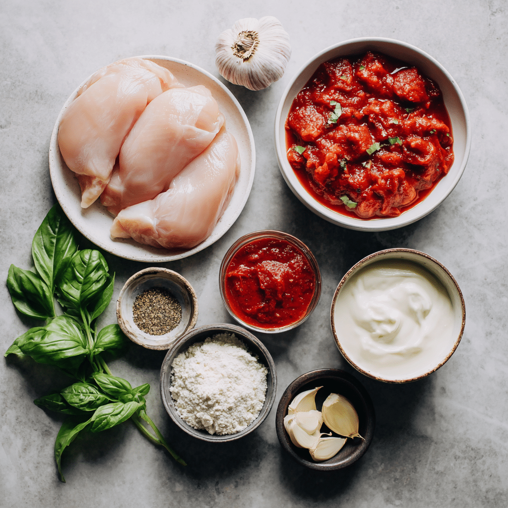 Ingredients for Slow Cooker Creamy Tomato Basil Chicken