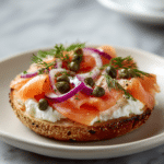 This smoked salmon bagel works because it balances rich, creamy, salty, and fresh elements in every bite. The cream cheese softens the smoky salmon, the capers and onion add sharp contrast, and the dill and lemon bring brightness. It’s filling without being heavy and elegant without being complicated.