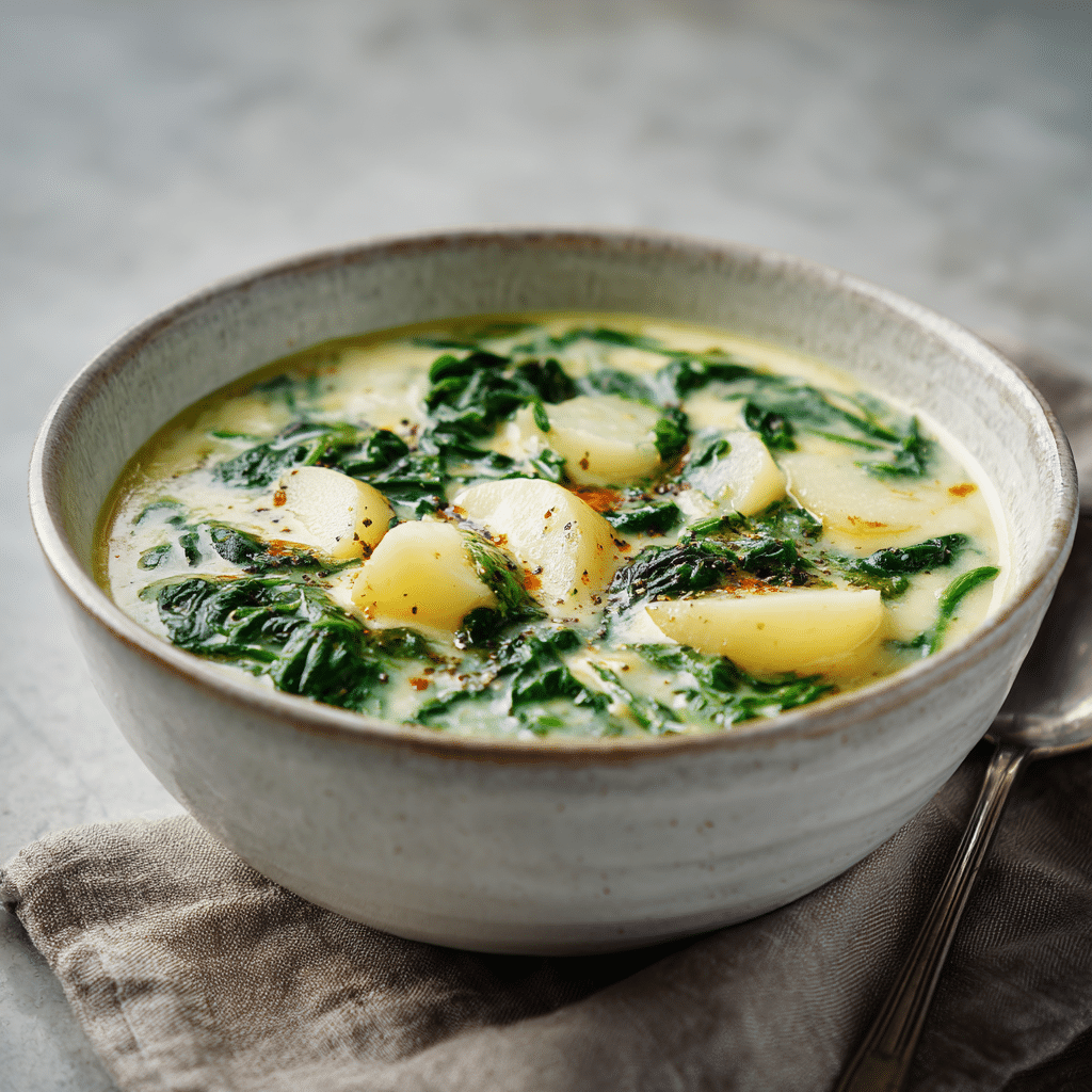 This soup relies on a short list of wholesome ingredients. Potatoes provide natural creaminess, while spinach adds nutrients and freshness without overpowering the dish.