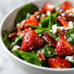 Spinach Strawberry Salad is best served immediately after tossing so the spinach stays fresh and the pecans keep their crunch. It is an excellent side dish for grilled chicken, roasted meats, sandwiches, and brunch spreads. It also works beautifully for spring holidays, baby showers, and potlucks because it looks bright and elegant on the table.