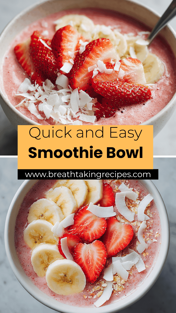 This Strawberry Banana Smoothie Bowl proves that healthy breakfasts don’t have to be complicated. With just a few ingredients and endless topping options, it’s a versatile recipe that fits into busy mornings, post-workout meals, or light desserts. Thick, creamy, and naturally sweet, this smoothie bowl is one you’ll make again and again.