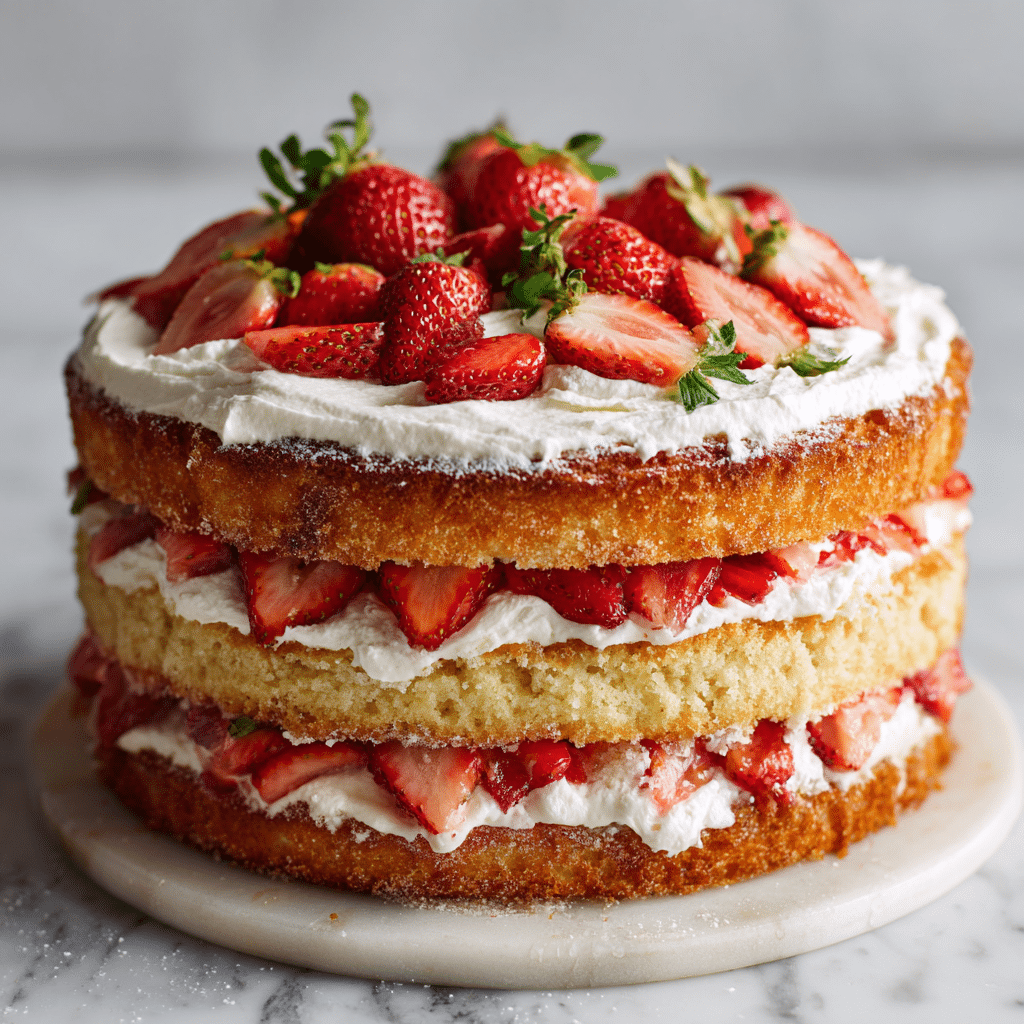 Strawberry Shortcake Layer Cake is an elegant and delicious dessert that combines fluffy sponge cake, sweet strawberries, and creamy mascarpone filling. Perfect for celebrations or special occasions, this cake delivers fresh fruit flavor and beautiful presentation in every slice.