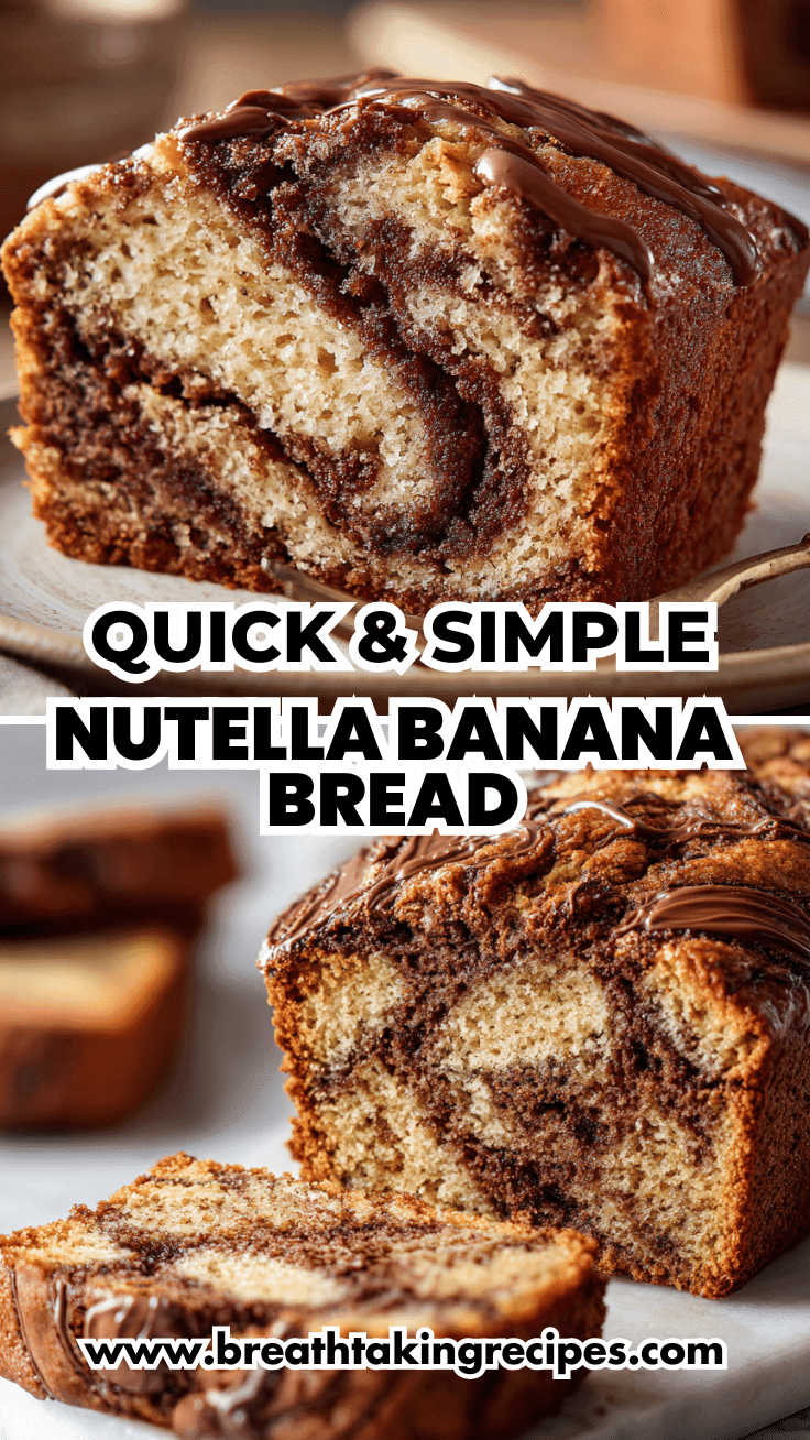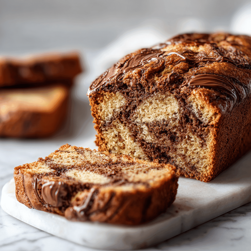 Ultra moist Nutella banana bread with rich chocolate hazelnut swirls.