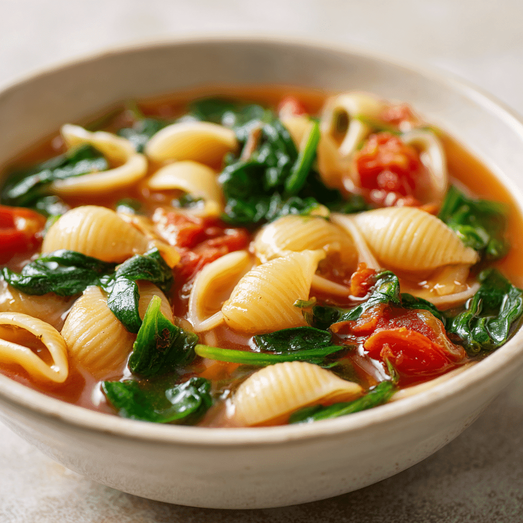 This Tomato Florentine Soup is everything a comforting bowl of soup should be. It has a rich tomato broth, tender pasta shells, and fresh spinach that wilts perfectly into the soup. Simple ingredients come together to create a dish that feels hearty without being heavy. It’s an ideal soup for chilly days, busy weeknights, or when you want something warm to serve alongside a grilled cheese or crusty bread.