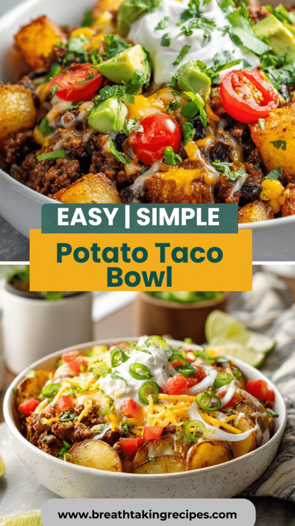 This Loaded Potato Taco Bowl combines crispy roasted potatoes with seasoned taco meat, beans, corn, and fresh toppings for a satisfying, gluten-free dinner bowl. A perfect choice for easy taco dinners, healthy lunch bowls, or quick weeknight meals. Discover the full recipe.