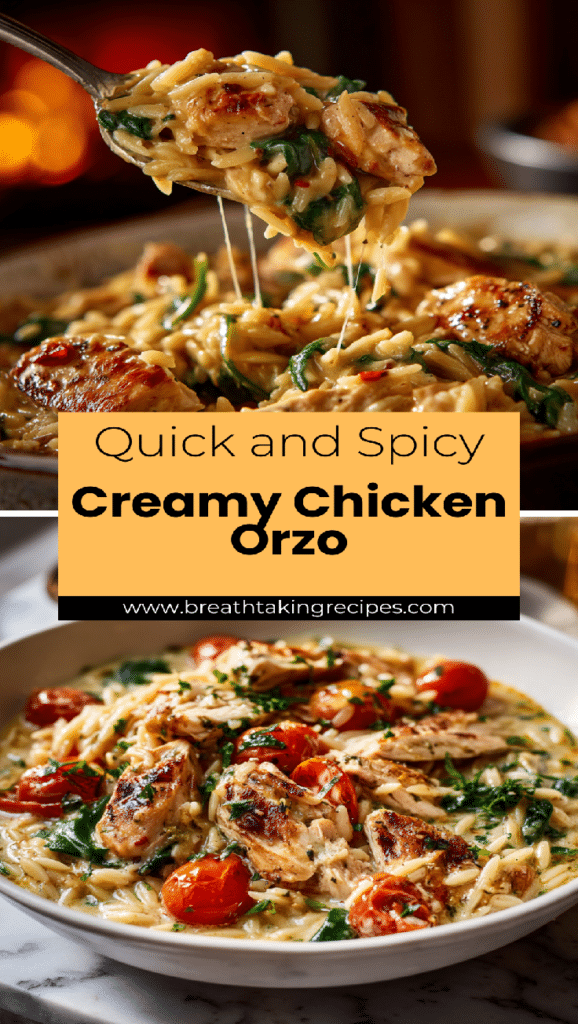 This Creamy Chicken Orzo with Spinach, Cherry Tomatoes, and Basil Pesto is a cozy one-pan dinner packed with flavor. Tender seasoned chicken, creamy pesto orzo, juicy tomatoes, and fresh spinach …